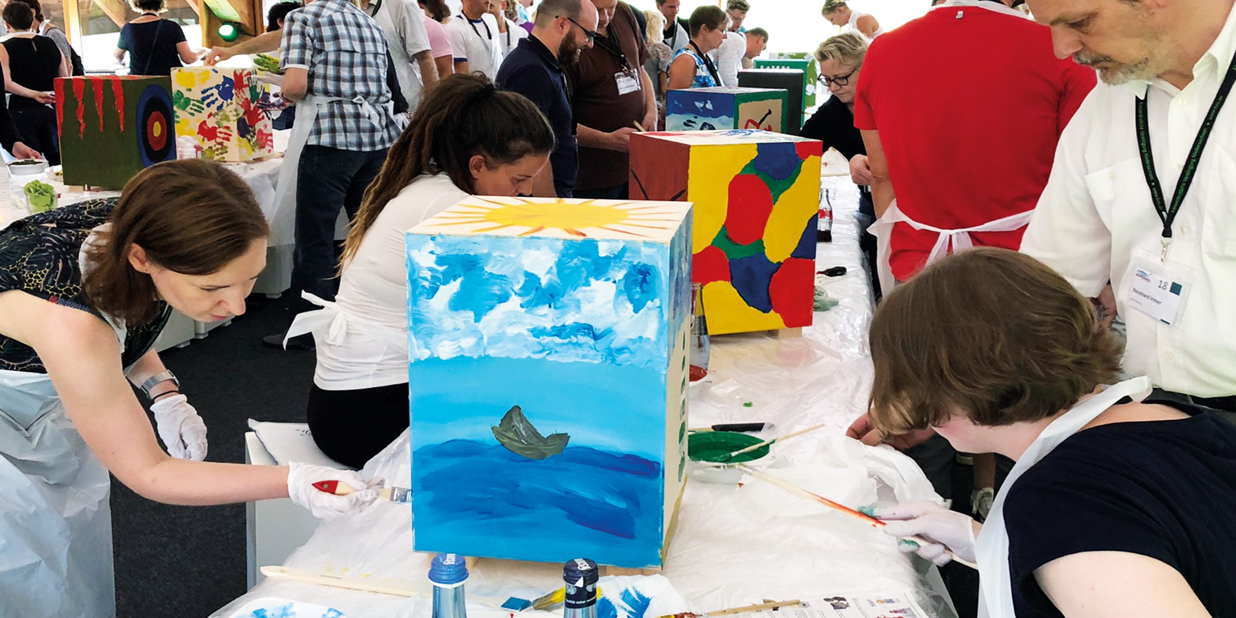 Bei diesem Teambuilding-Event bauen Sie im Team Ihr eigenes vollwertiges Musikinstrument (= Cajon aus Holz oder alternativ aus Pappe), bemalen es anschließend mit Ihrem eigenen Design und bekommen zum Abschluss noch einen mitreißenden Trommelworkshop geboten, der das Teamgefühl stärkt. So erhält am Ende des Events jeder sein persönliches Give-Away zusammen mit der Erinnerung an ein einmaliges Musikereignis. Der Aufbau der Bausätze ist einfach und wird durch das Team von Drum Ole betreut, damit jeder am Ende sein eigenes Instrument mit nach Hause nehmen kann. Entdecken auch Sie mit Ihrem Team Ihr Gespür für Rhythmus.