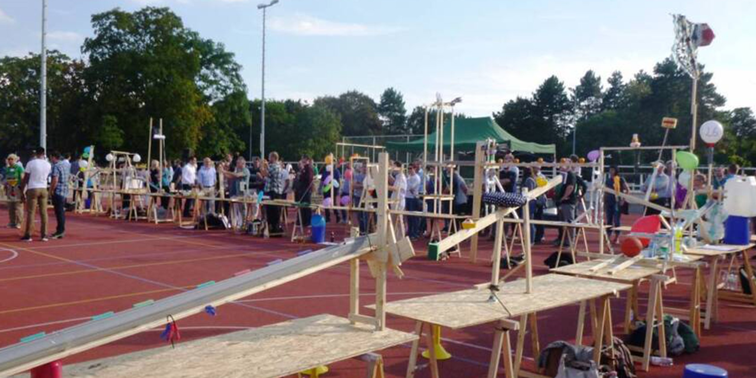 Sie tüfteln gerne und behalten selbst in verzwickten Situationen den Überblick? Die Impulskette verbindet Handeln, kreatives Denken und Innovation. Die Aufgabe, die Ihnen gestellt wird, ist ganz einfach: Ein Impuls soll sich über mehrere Stationen und Bauabschnitte in Kettenreaktionen zum Ziel bahnen. Doch die Durchführung hat es in sich, denn es kommt auf jedes Detail an. Jedes Team ist für einen Bauabschnitt zuständig. Für jeden der einzelnen Abschnitte gibt es eine zum Motto passende Anforderung, die vom gesamten Team nur mit Spaß, Kreativität und Innovationsfreude in die Tat umgesetzt werden kann. Zusätzlich müssen für eine reibungslose Funktion, alle Schnittstellen zwischen den einzelnen Teilstücken koordiniert werden. Wichtige Absprachen müssen also nicht nur innerhalb des eigenen Teams, sondern auch mit den Nachbarteams getroffen werden.